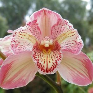 This is perhaps the most unique cymbidium to date. The petals are peloric and the sepals are splashed. This is the only cymbidium that I know of to date with this characteristic. It is an amazing and beautiful, as well as easy to grow and bloom. Meristems were made of this plant, but they generally mutated, and none grow or bloom like the original version. A truly remarkable cymbidium that must be added to any elite collection. Near blooming size division in a gallon pot.