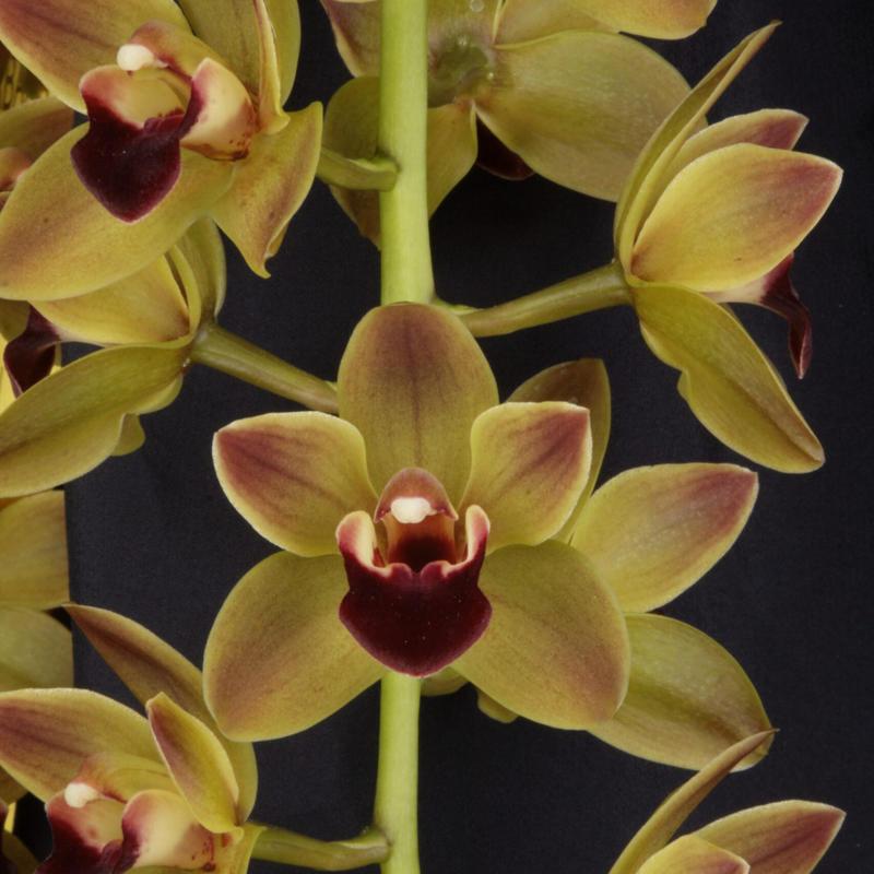 This is the first release of a division of this extraordinary plant. Highly awarded at the Santa Barbara International orchid show. It is a novelty cymbidium with lovely pendulous inflorescences with nice red highlighting on the petals. Very good form, substance and very floriferous. Near blooming size division in a gallon pot.