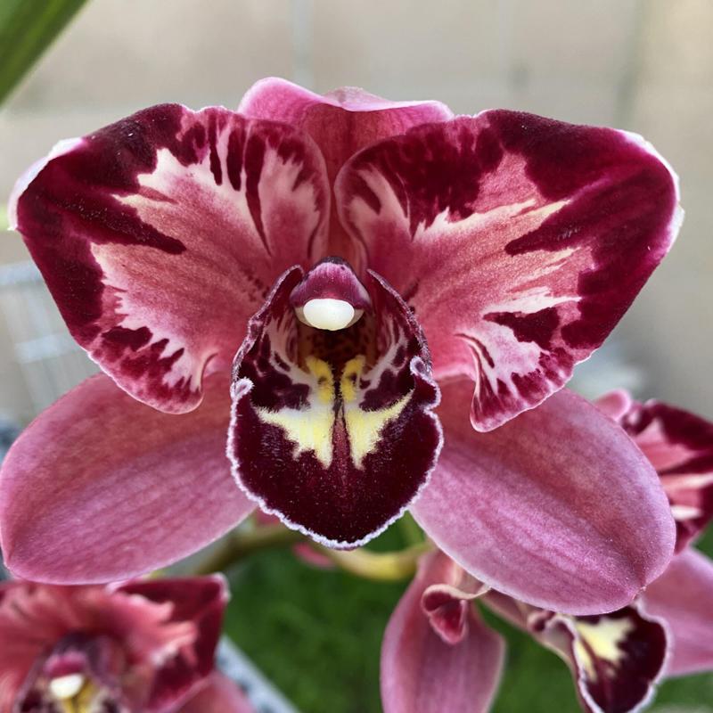 This is a mutation from the meristem of Pepper’s Fire ‘Fiesta’. A larger plant with very nice peloric markings on upright spikes. Near blooming size division in a gallon pot.