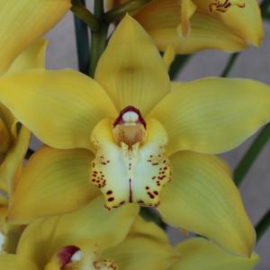 Huge clear yellow flowers with red spotted lips on strong upright spikes. Flower span is an impressive 6-7 inches. Near blooming size division in a gallon pot. Division of the awarded mother plant.
