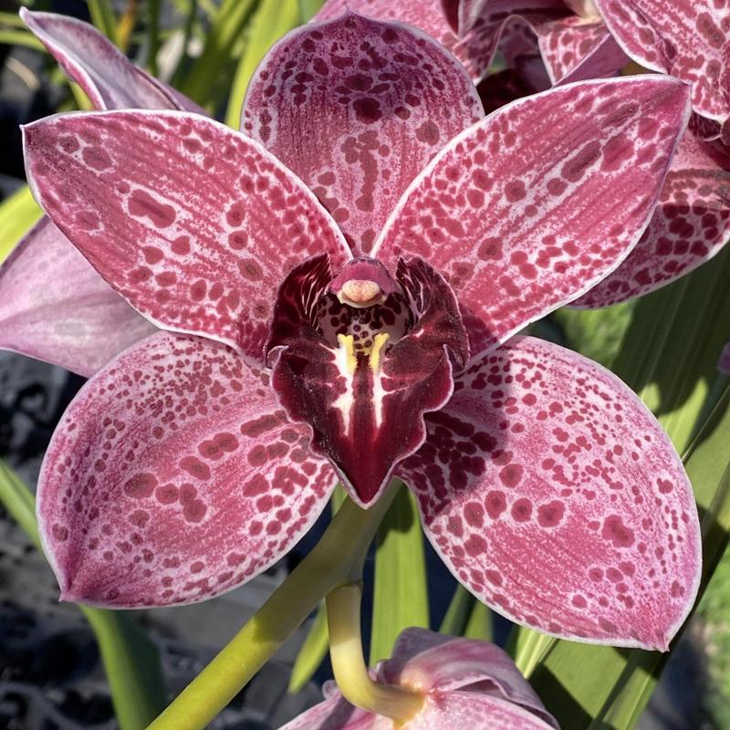 This is the first release of this plant. It is a very large standard red cymbidium on a gracefully arching spike. Flowers or heavily spotted, and lip is bold burgundy. Near blooming size division in a gallon pot.