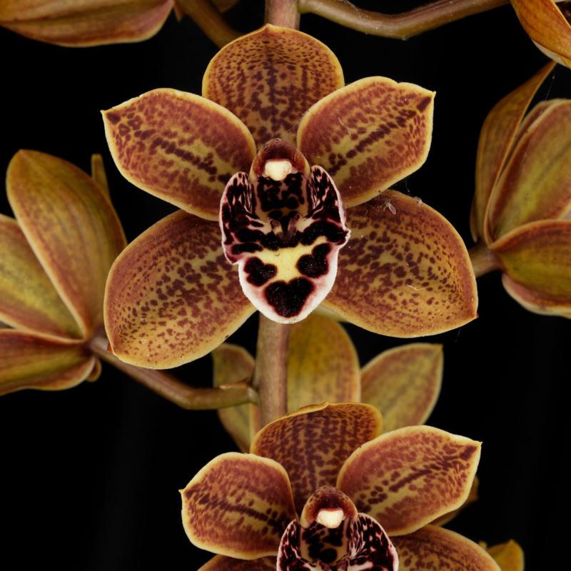 This is the third release of a division of this plant. It is an outstanding grower and bloomer. Long pendulous spikes of brown/polychrome flowers with excellent form and presentation, and very floriferous. Being a primary suave hybrid, this plant has multiple spikes per bulb and can also bloom off old bulbs. Near blooming size division in a gallon pot.
